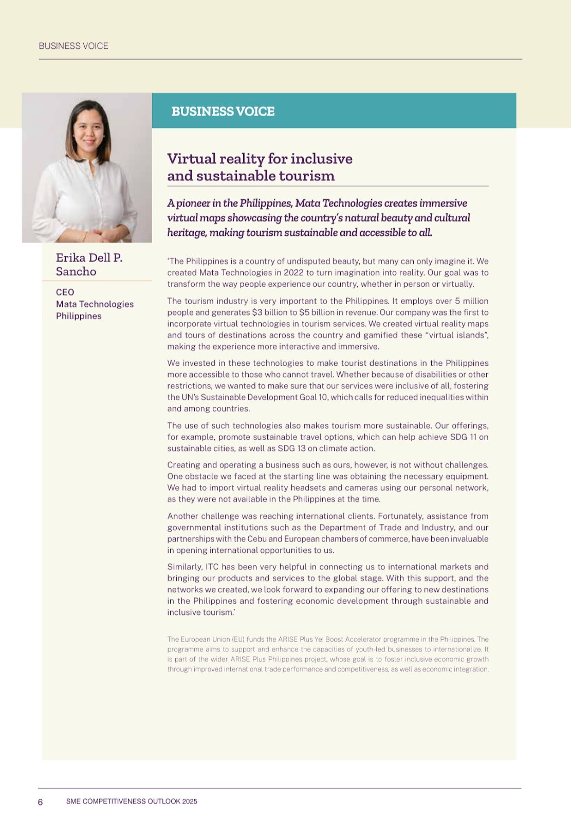Our recognition in the UN–ITC SME Competitiveness Outlook is not just an accolade, it’s a challenge. It reminds us that the world is watching how the Philippines transforms creativity into progress.